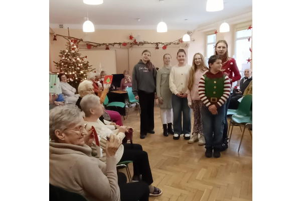 18 grudnia 2025r. uczniowie klasy 6 spotkali się z seniorami. Były życzenia, wspólne kolędowanie, wspomnienia z dawnych lat i opowiadanie o tradycjach świątecznych. Nie zabrakło drobnych upominków. Małgorzata Gałaj