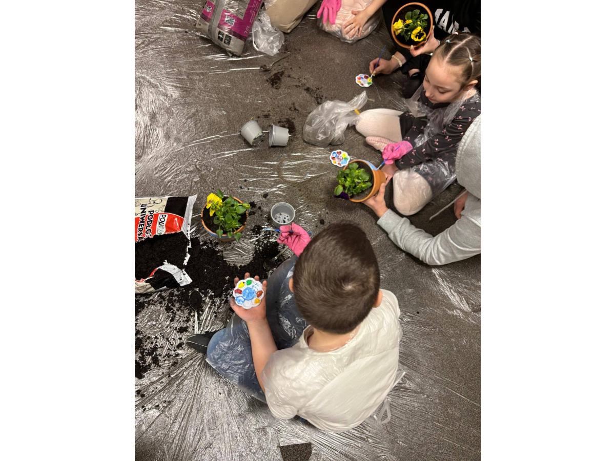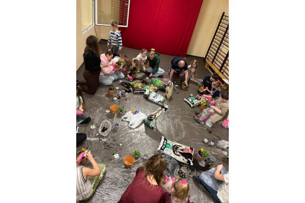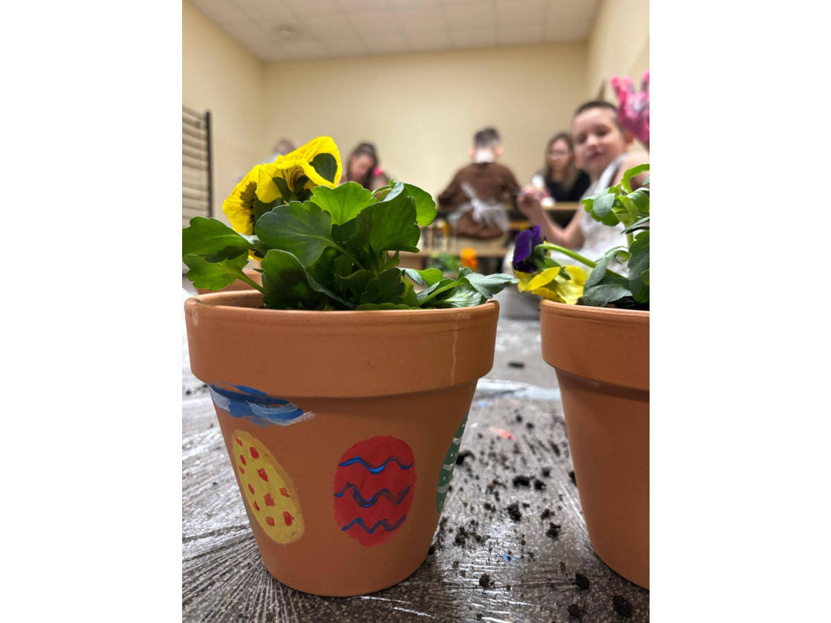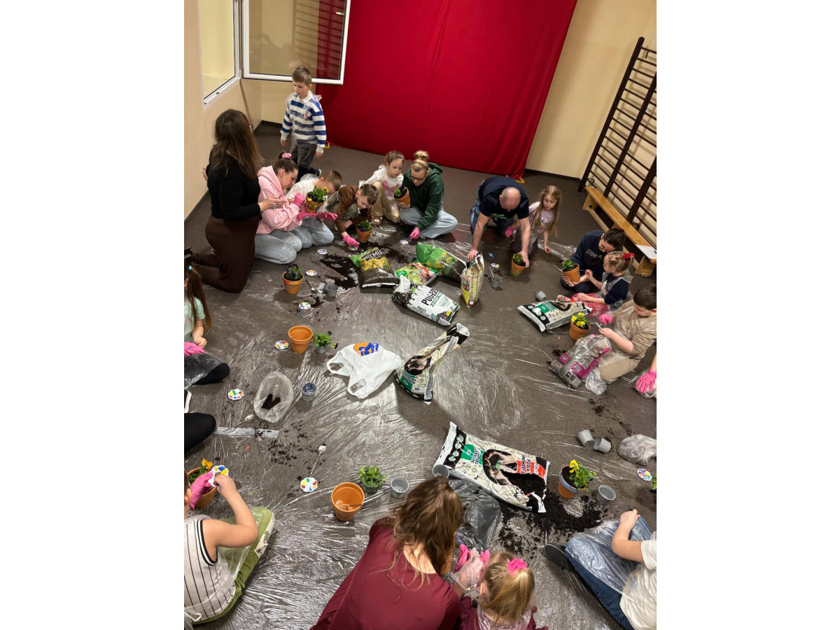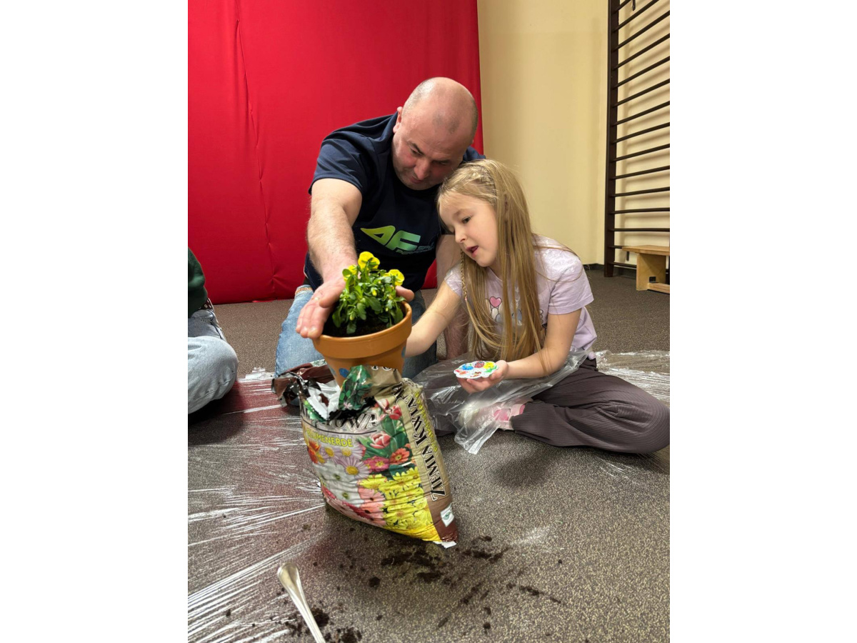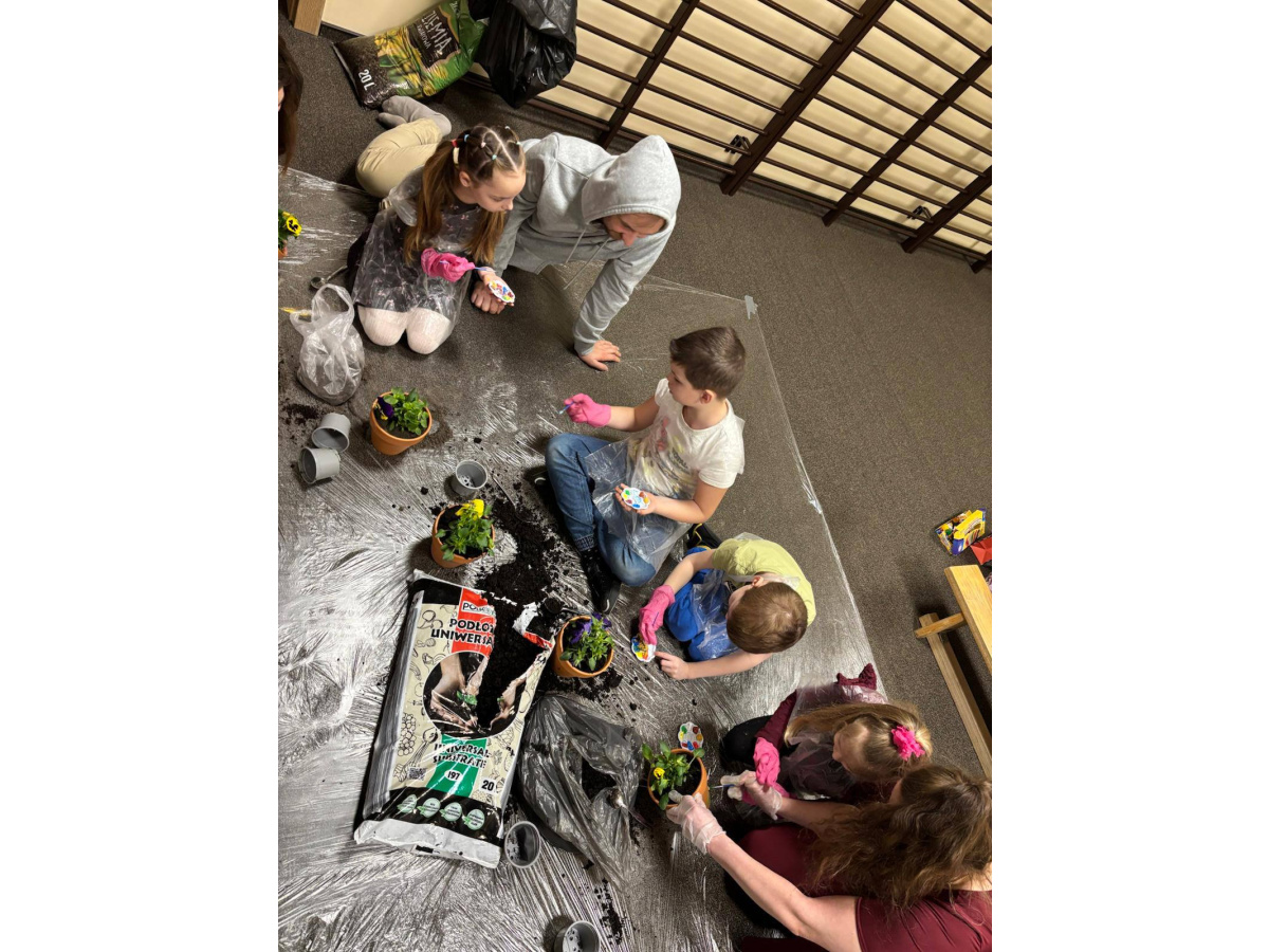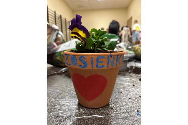 To było wyjątkowe spotkanie pełne wspólnej pracy i radości. Razem sadziliśmy kwiaty, ucząc dzieci troski o rośliny, a później daliśmy upust kreatywności, ozdabiając doniczki farbami.