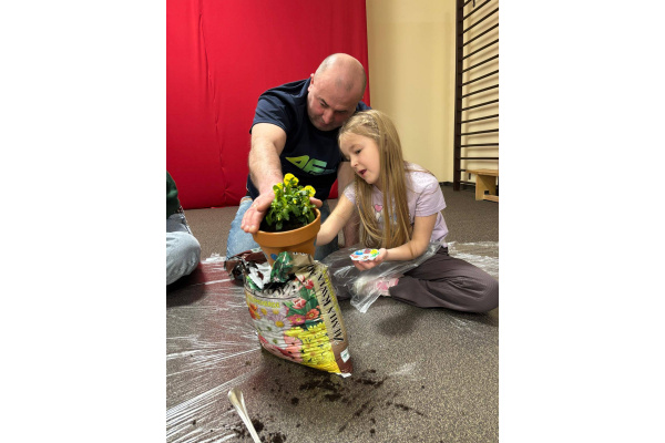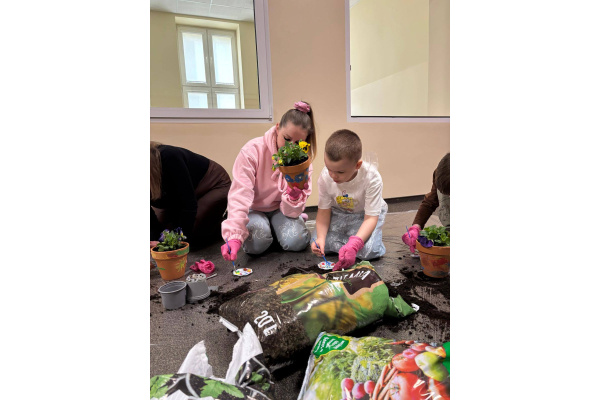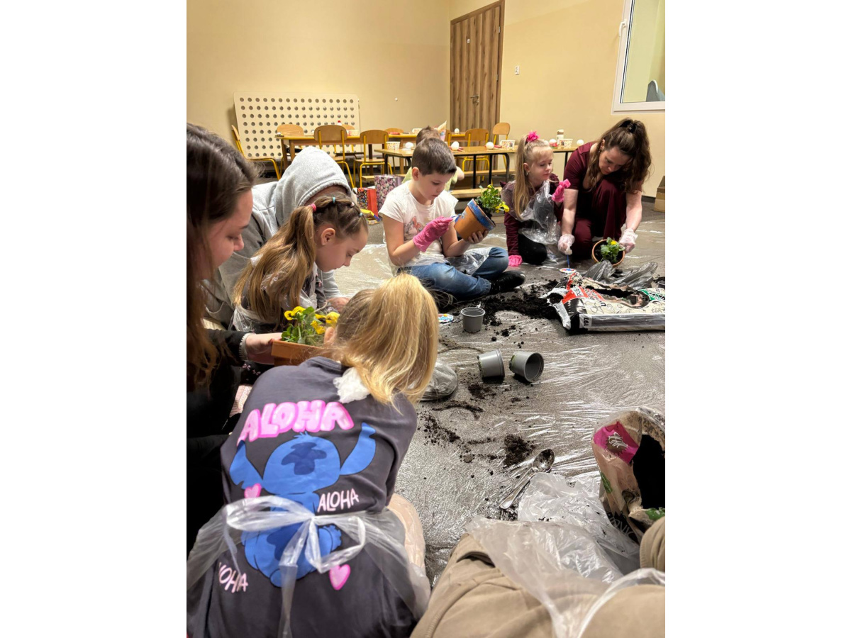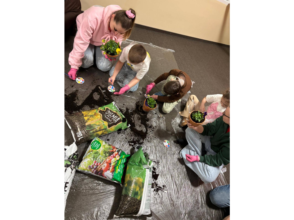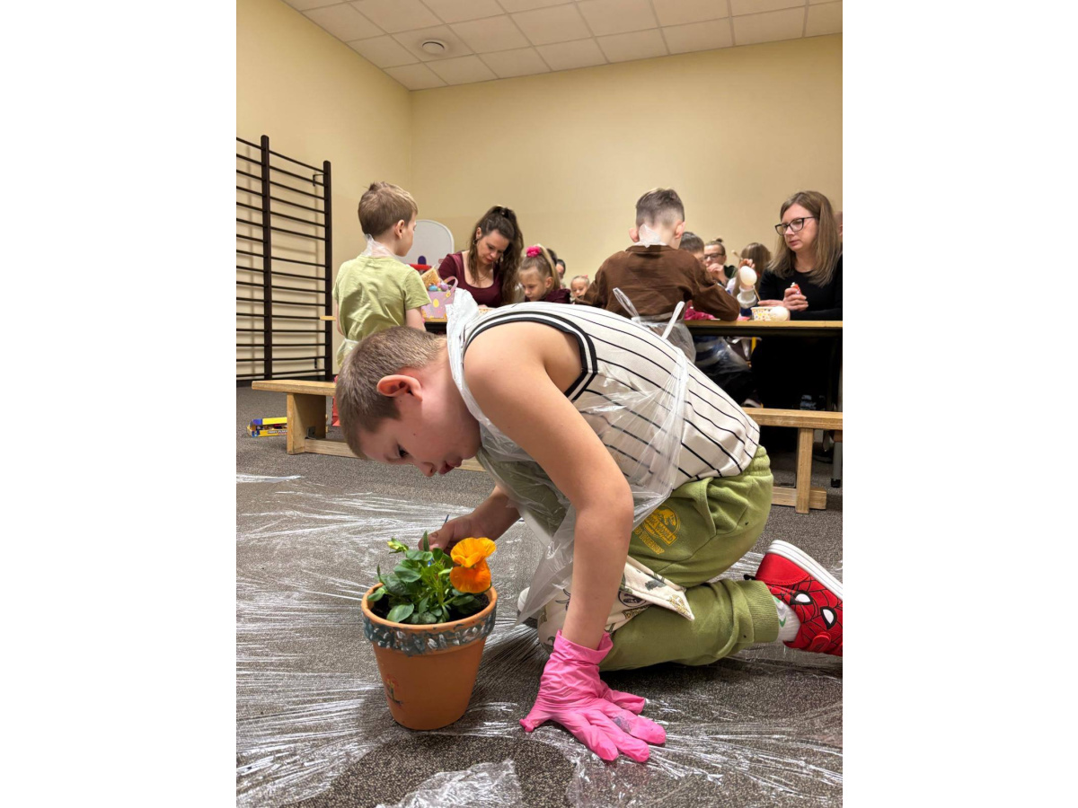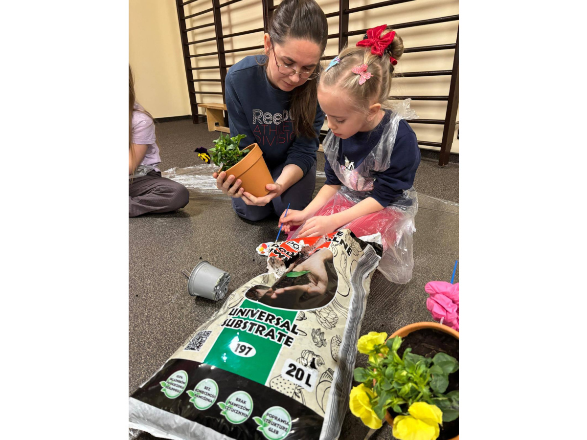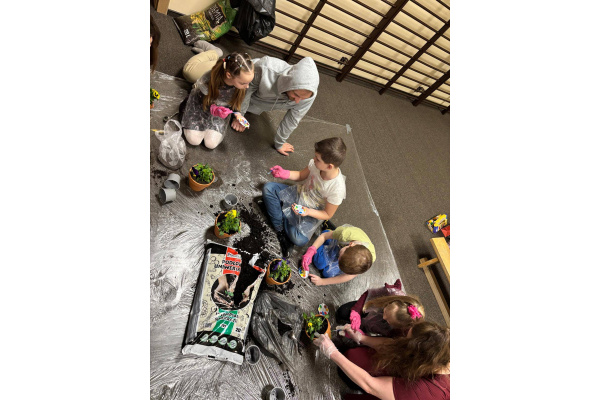 To było wyjątkowe spotkanie pełne wspólnej pracy i radości. Razem sadziliśmy kwiaty, ucząc dzieci troski o rośliny, a później daliśmy upust kreatywności, ozdabiając doniczki farbami.
