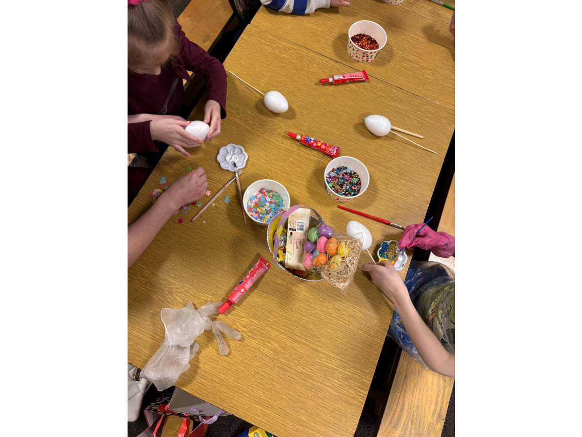 Na zakończenie wszyscy włączyli się w dekorowanie styropianowych jajek, wprowadzając się w świąteczny nastrój.